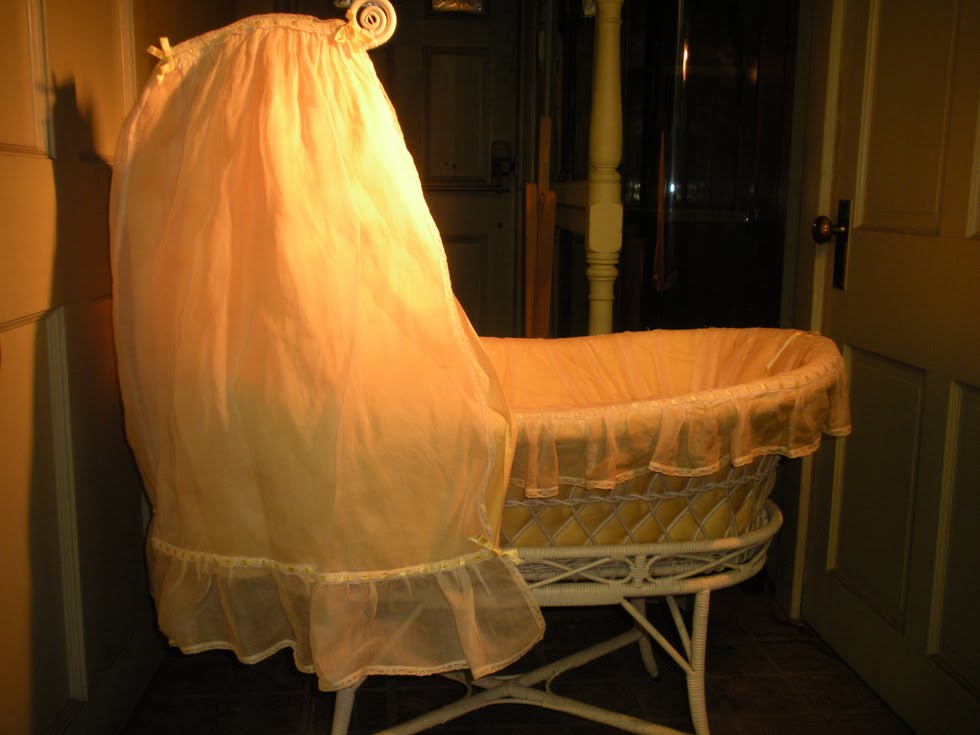 Could anything be more perfect for a vintage summer nursery??? White wicker, aged yellow linen, delicate ruffles, trimmed with ribbon. So my crib stayed home and this lovely bassinet became the main character of our story. While I was checking out the large collection of vintage treasures donated by Danvers-area families to the historical society’s collection, I saw these